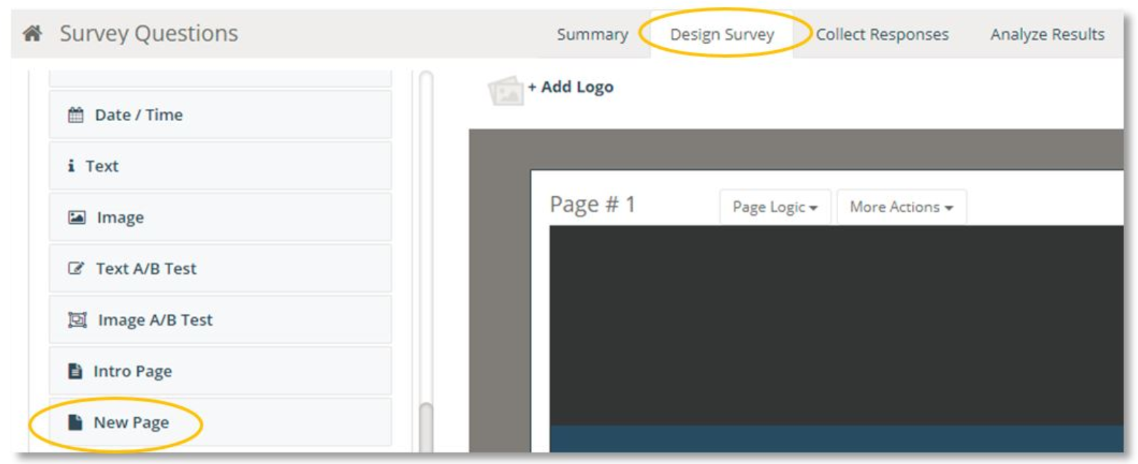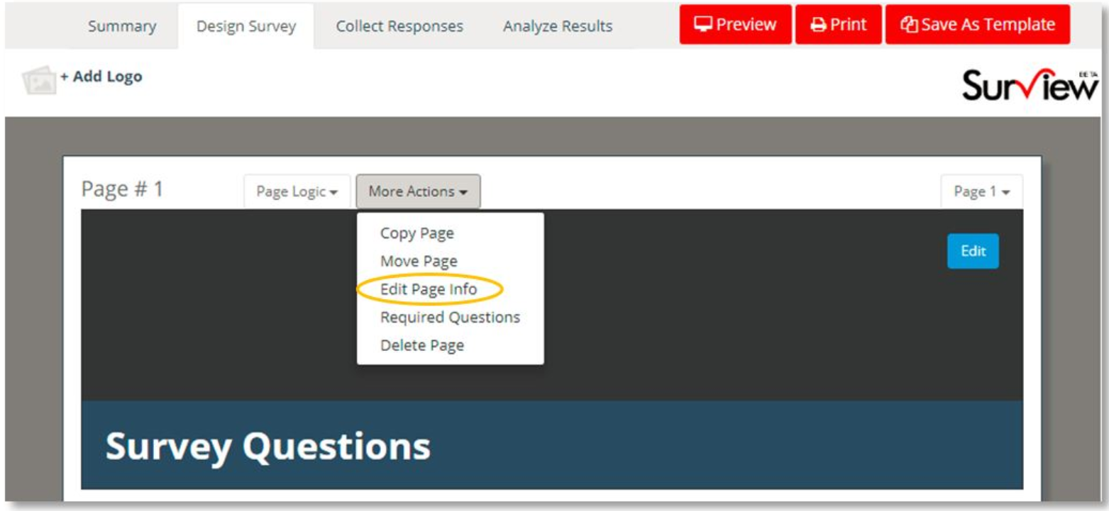 - On the Design Survey page, scroll to the page whose information you’d like to edit.