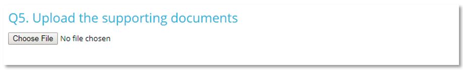 The File Upload question lets respondents attach files in support to their response. This question type allows you to have your respondents upload a file or a document as part of their survey response. You can choose the file extensions from PDF, DOC, DOCX, PNG, JPG, JPEG, GIF that you wish to allow when you create the question. The file to be uploaded should not exceed 16MB.