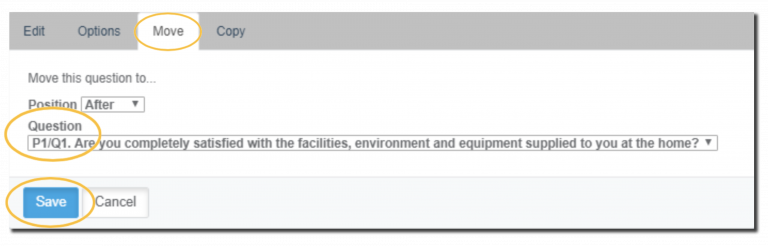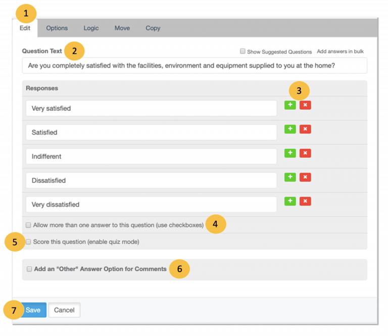 Under the Edit, Options, Logic, Move and Copy tabs, you can make additional customization to your survey questions in the following ways: