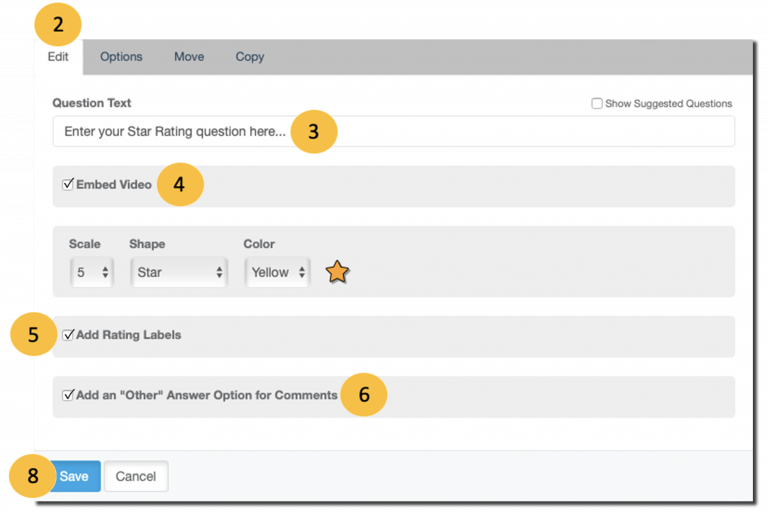- From the BUILDER section, click +Add button next to the Star Rating question type.